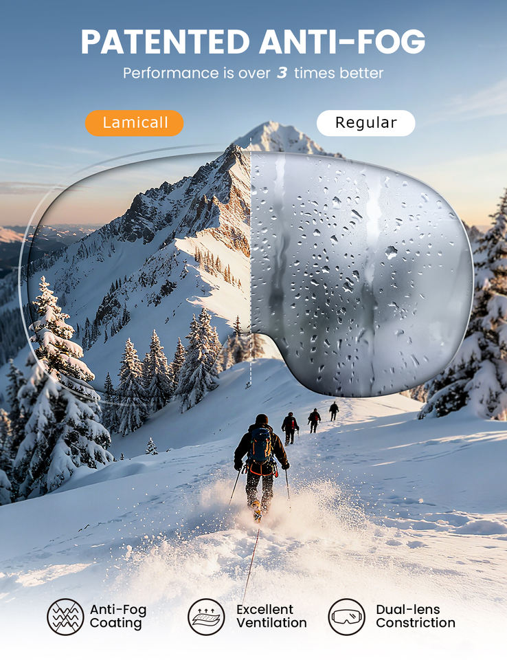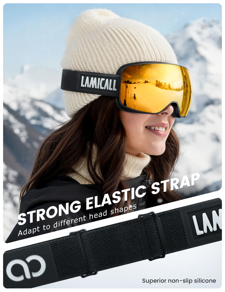 Masque de ski Lamicall SG02 OEM avec revêtement miroir, anti-buée, UV400, OTG, pour snowboard, lentille sphérique, pour les jours ensoleillés et nuageux
