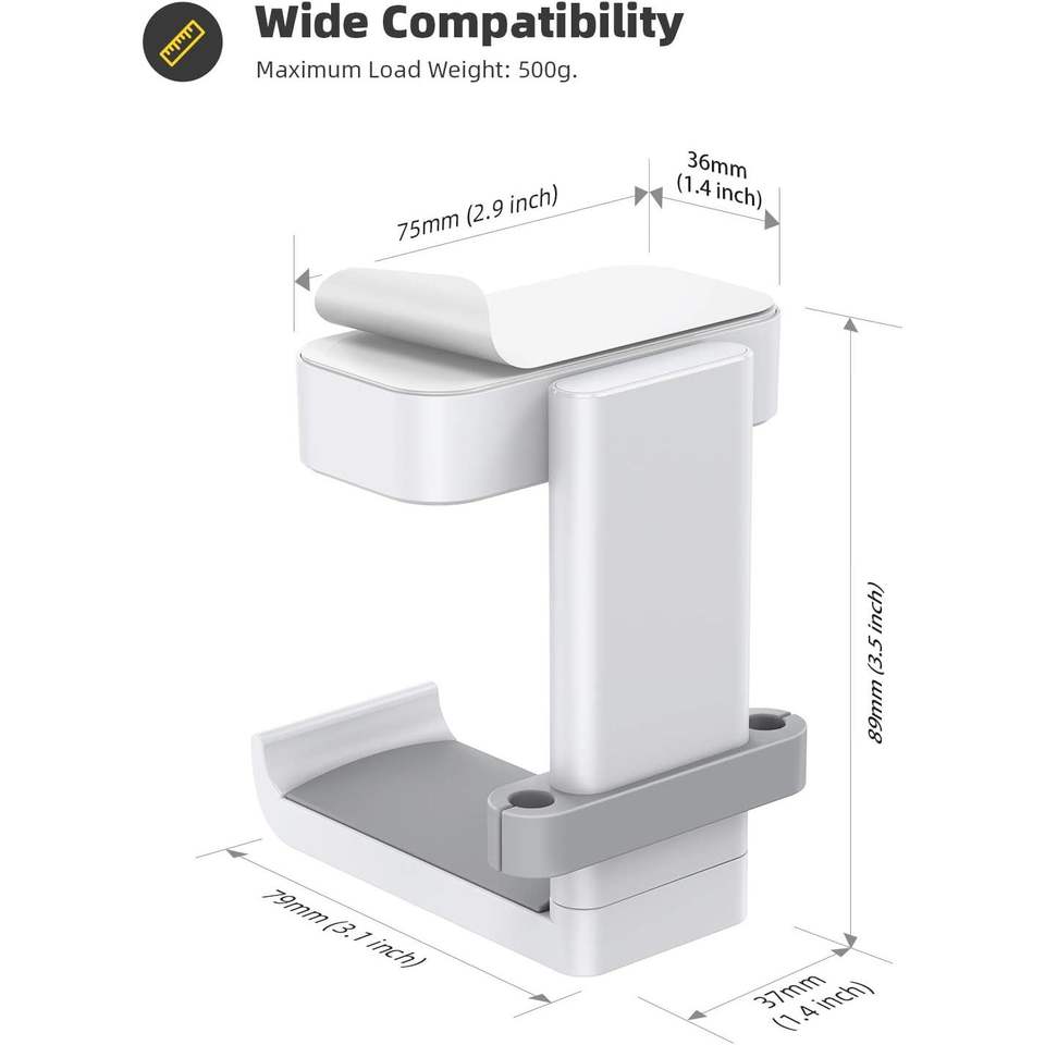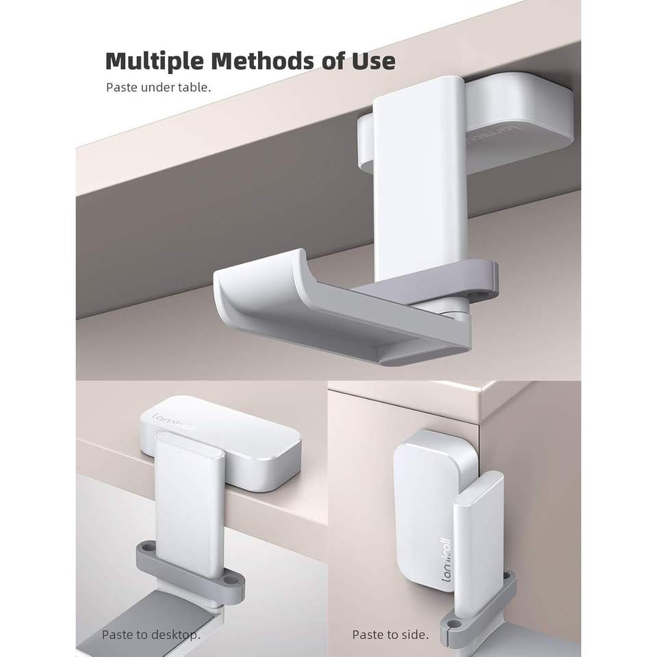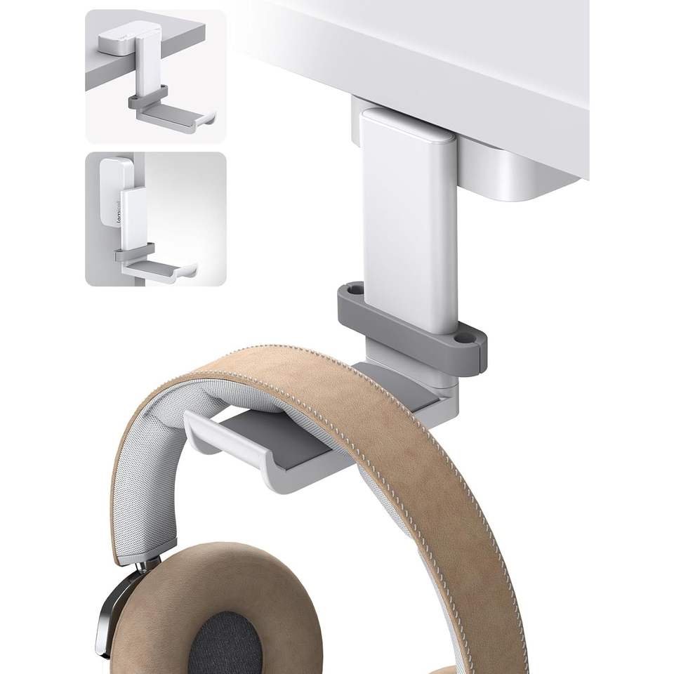 Support de casque en aluminium rotatif à 360 degrés Lamicall blanc, support adhésif pour casque, crochet adhésif, support pour écouteurs, table