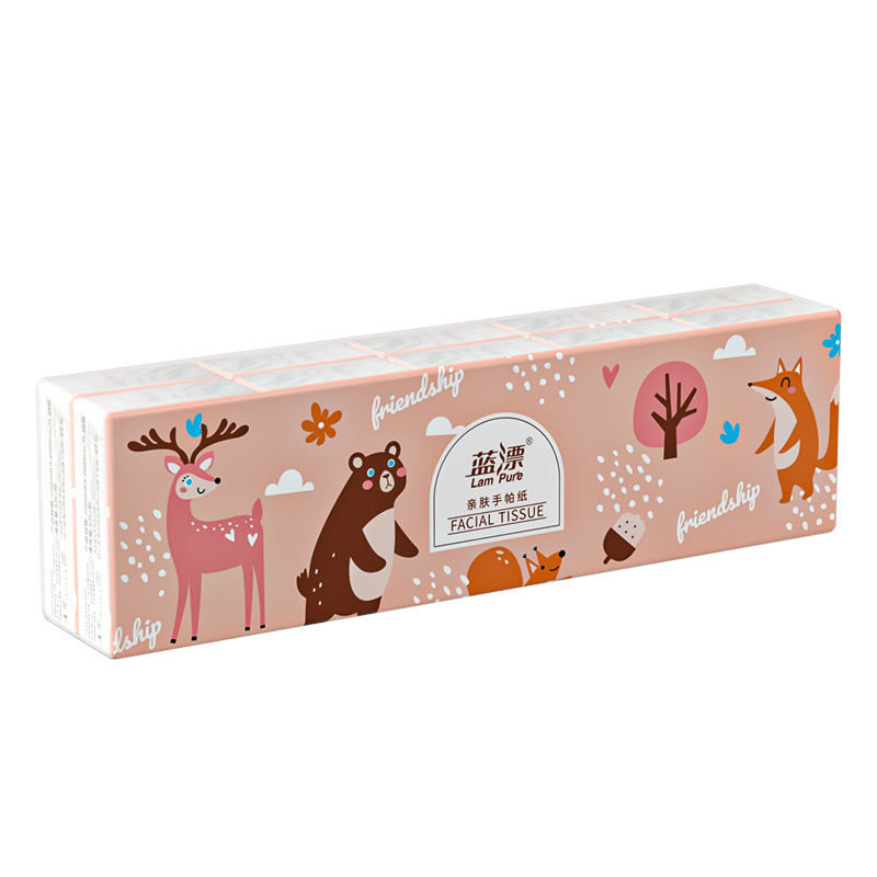Lampure échantillon gratuit de papier de soie de poche pulpe de bambou 200*200 4ply animaux blancs mignons mouchoir doux utilisation extérieure humide et sèche