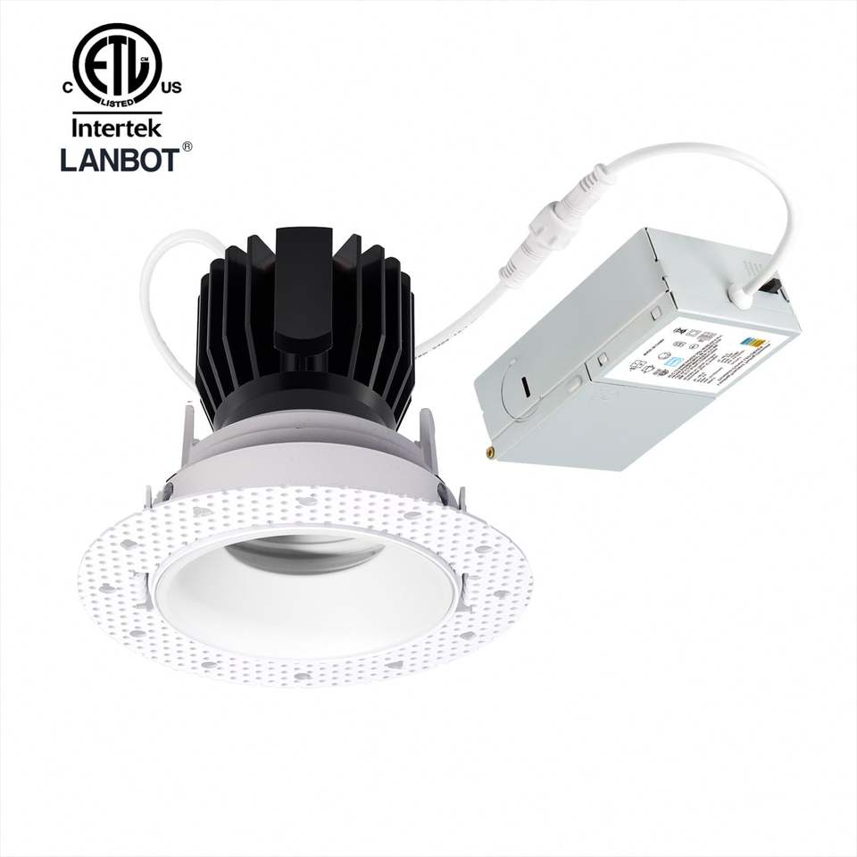 Lampe encastrée LED ronde sans cadre Lanbot Driver 3 pouces, dimmable Dali, lumière chaude 3000K-1800K