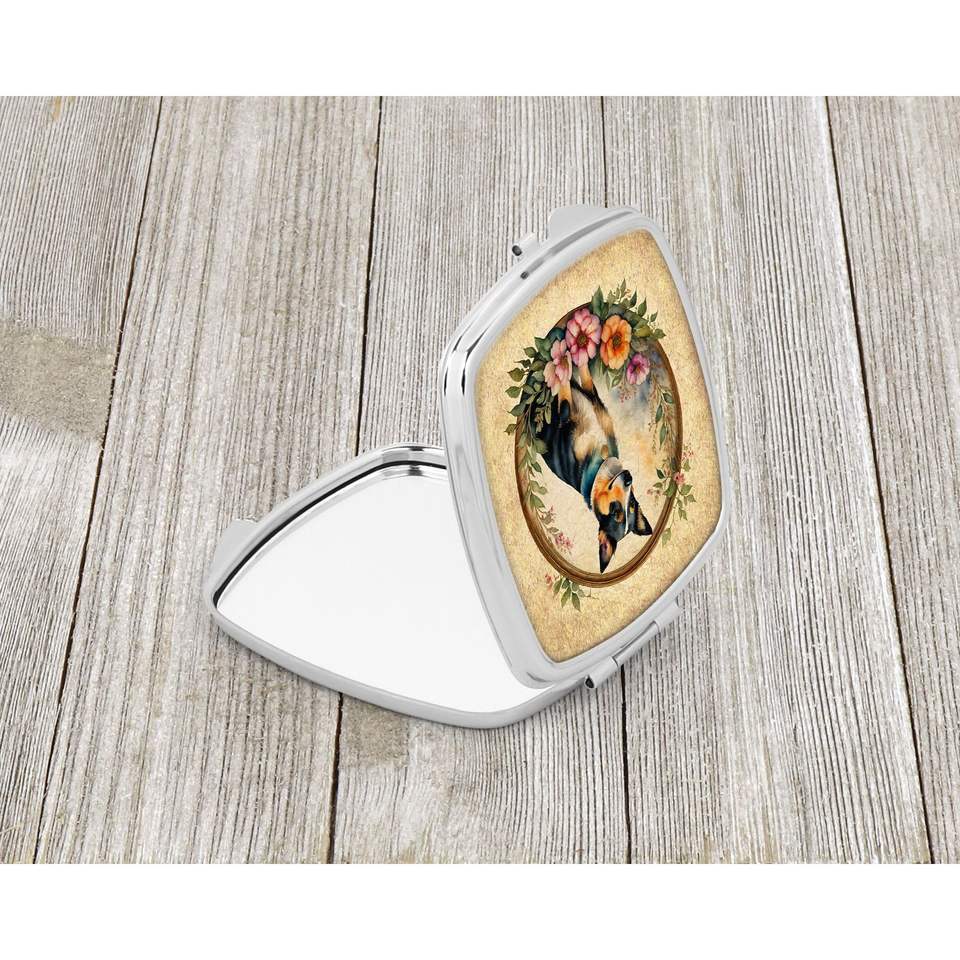 Lancashire Heeler Fleurs Compact Pliant Miroir De Maquillage De Poche Portable Voyage Miroir De Poche Décoratif pour Femmes Filles Cadeau