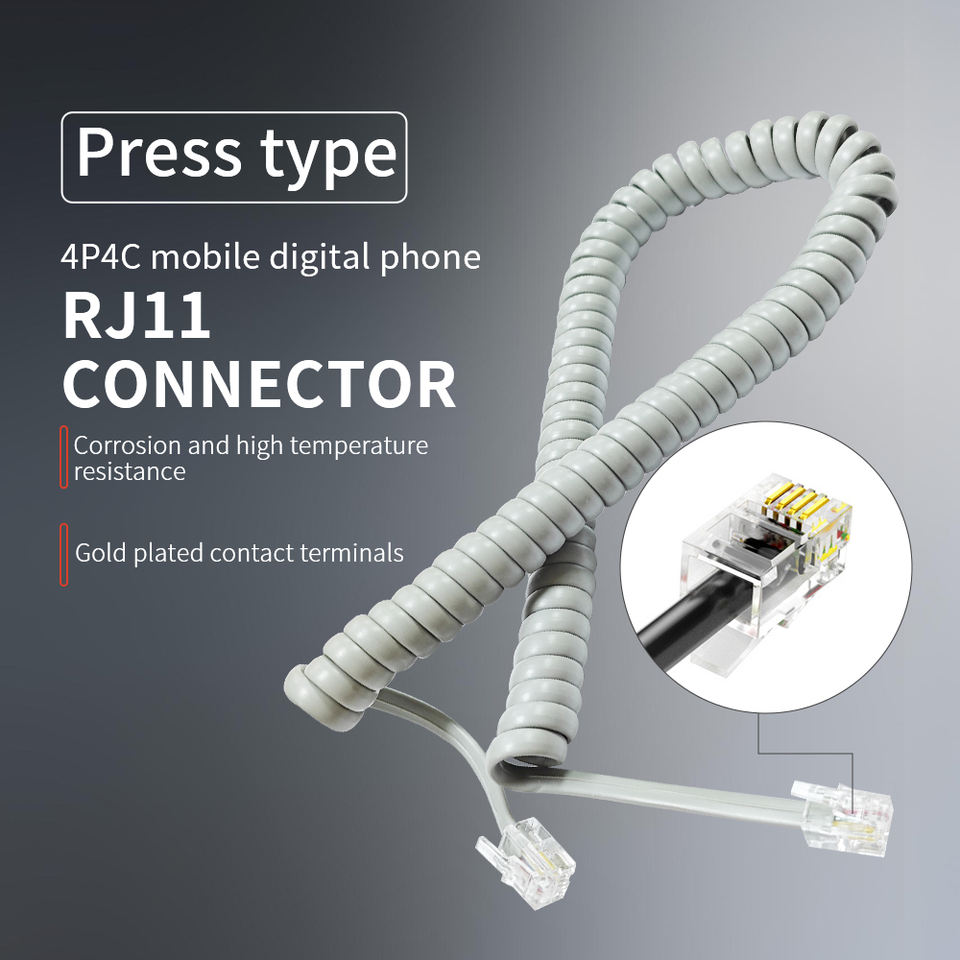 Câble de combiné téléphonique fixe 4P4C RJ9 RJ22 RJ11, cordon de combiné téléphonique en spirale plat blanc gris, câble en spirale de 4 pouces, 6 pieds