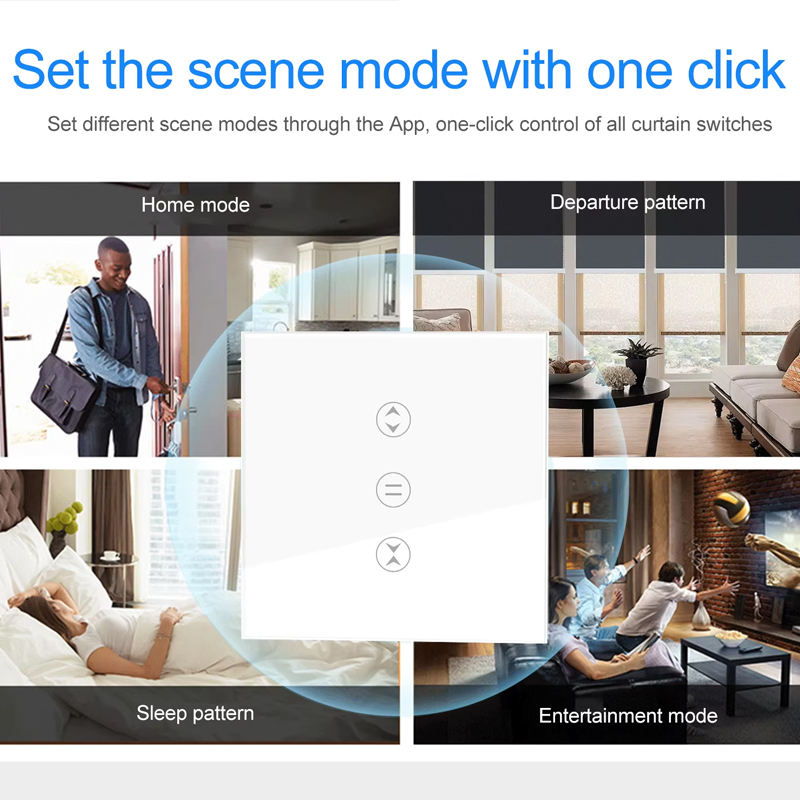 Interrupteur intelligent WiFi pour volet roulant LangYeao, norme EU/UK, panneau tactile en verre trempé, compatible avec Tuya, Alexa, Google Home