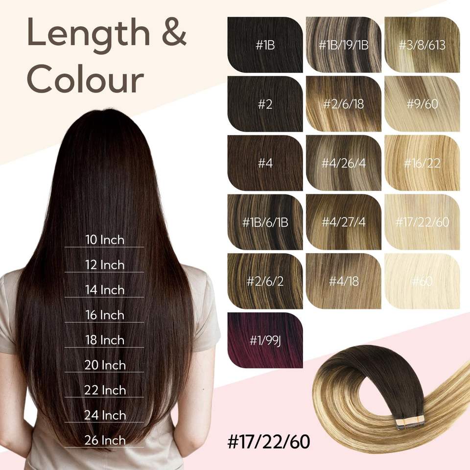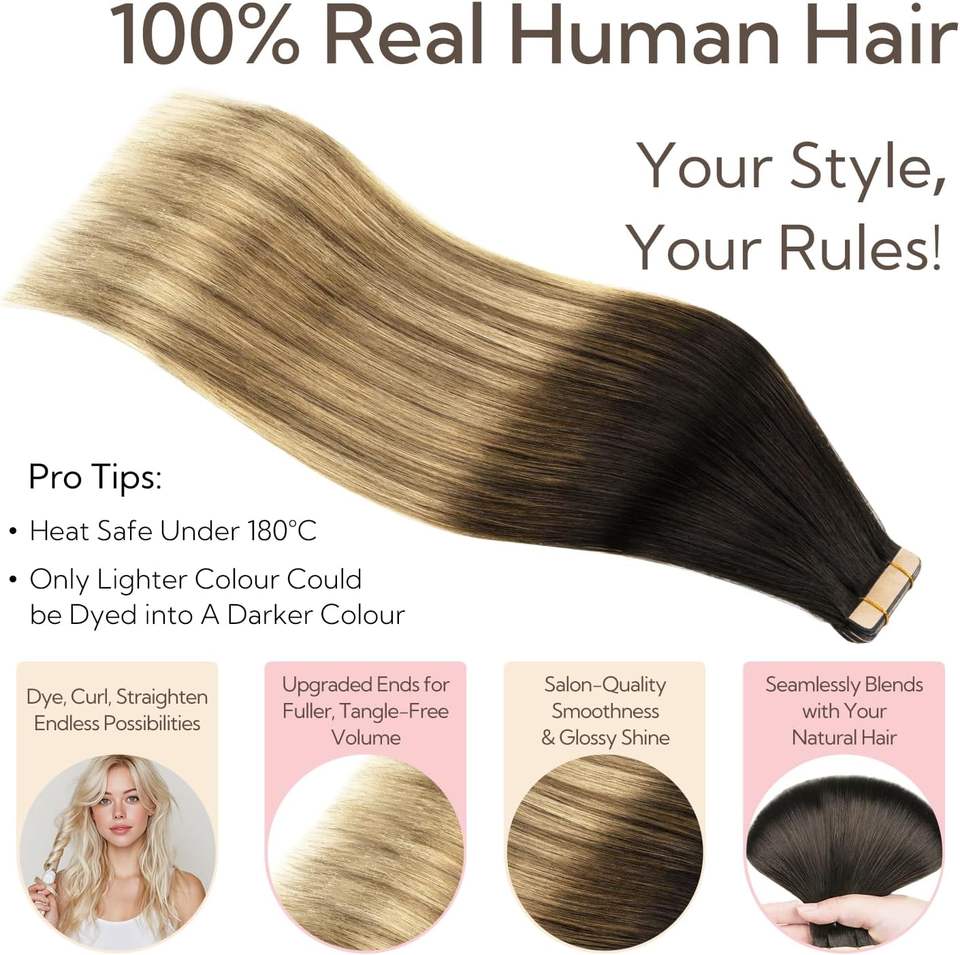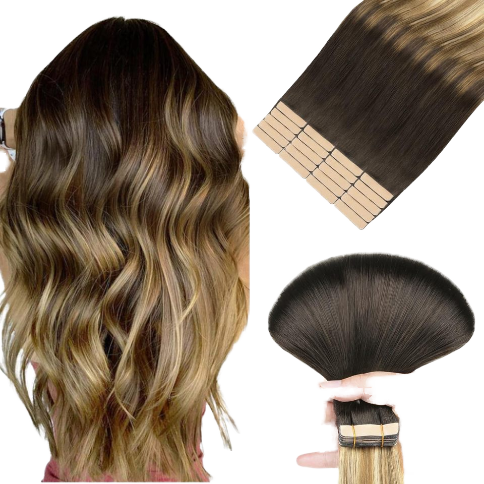 Extensions de cheveux à bandes adhésives Lanrui Hair, cheveux brésiliens Remy, double face, brun foncé, châtain, blond sale, double trame machine, 35 cm