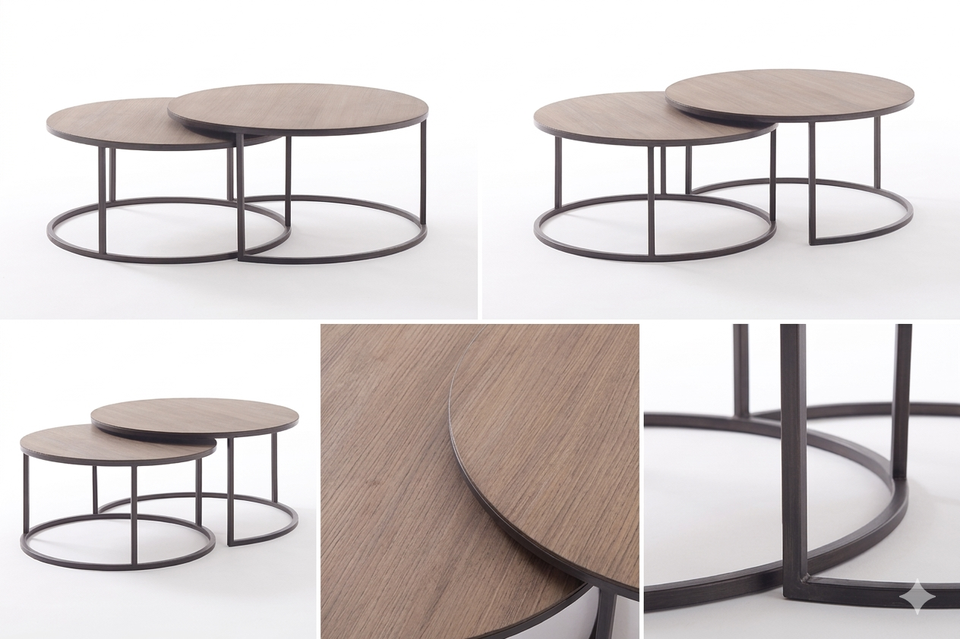 Lany Set Table basse (Finition Naturel/Couleur), 90 x 90 x 45 (cm)