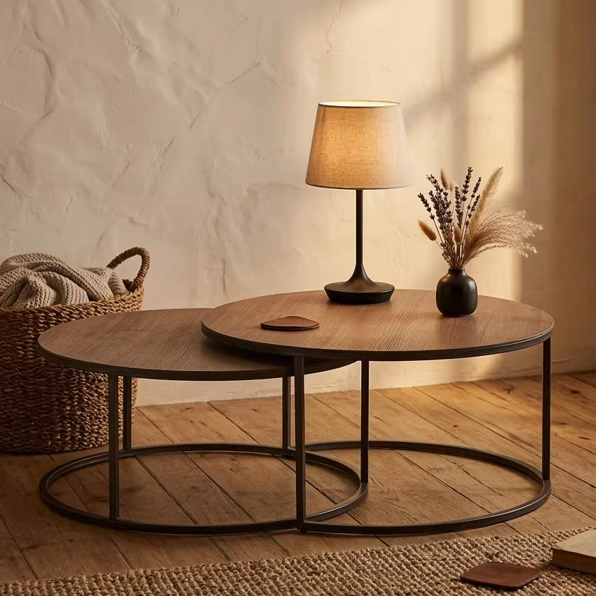 Ensemble de table basse Lany Premium en teck massif, style scandinave moderne, finition naturelle, meubles de salon, table centrale et table d'appoint