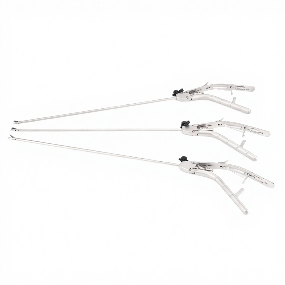 Instruments chirurgicaux laparoscopiques réutilisables en acier, porte-aiguilles manuel de type pistolet avec mâchoire droite/courbe