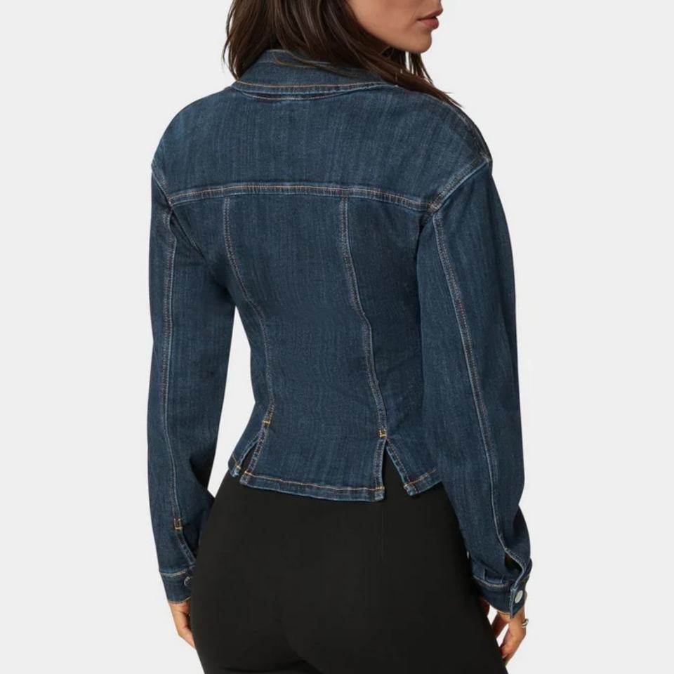Veste en jean décontractée pour femme en coton respirant, avec fermeture à revers bidirectionnelle, boutons décoratifs et effet délavé