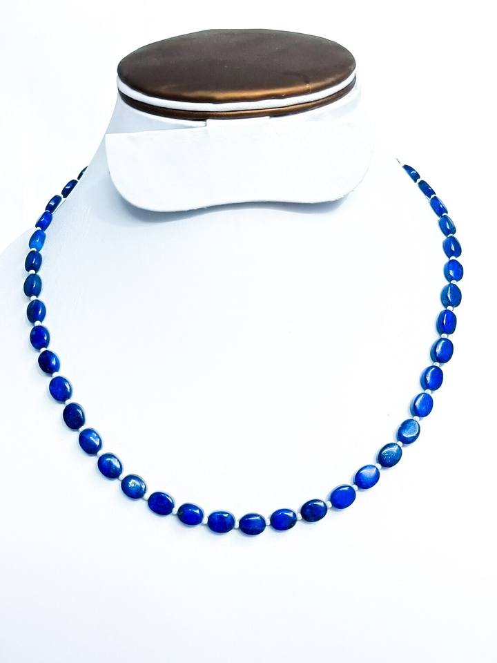 Product name:Lapis Lazuli Oval Beads Necklace With 925 Silver Clasp