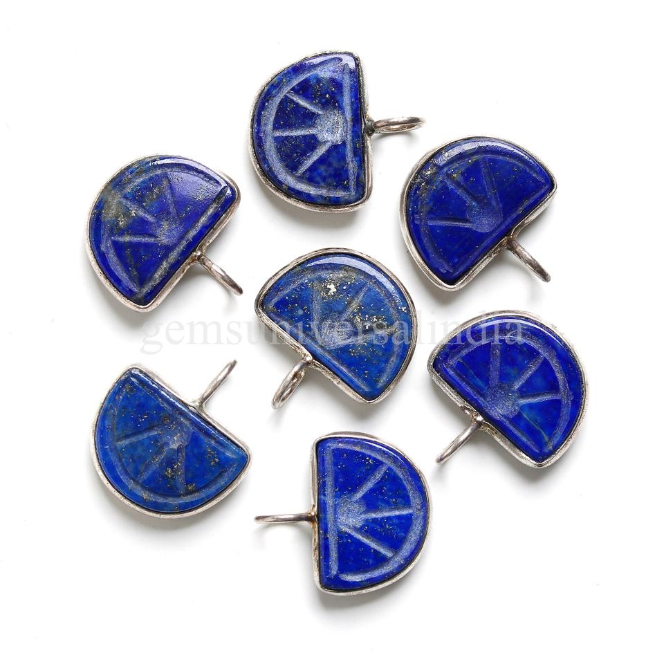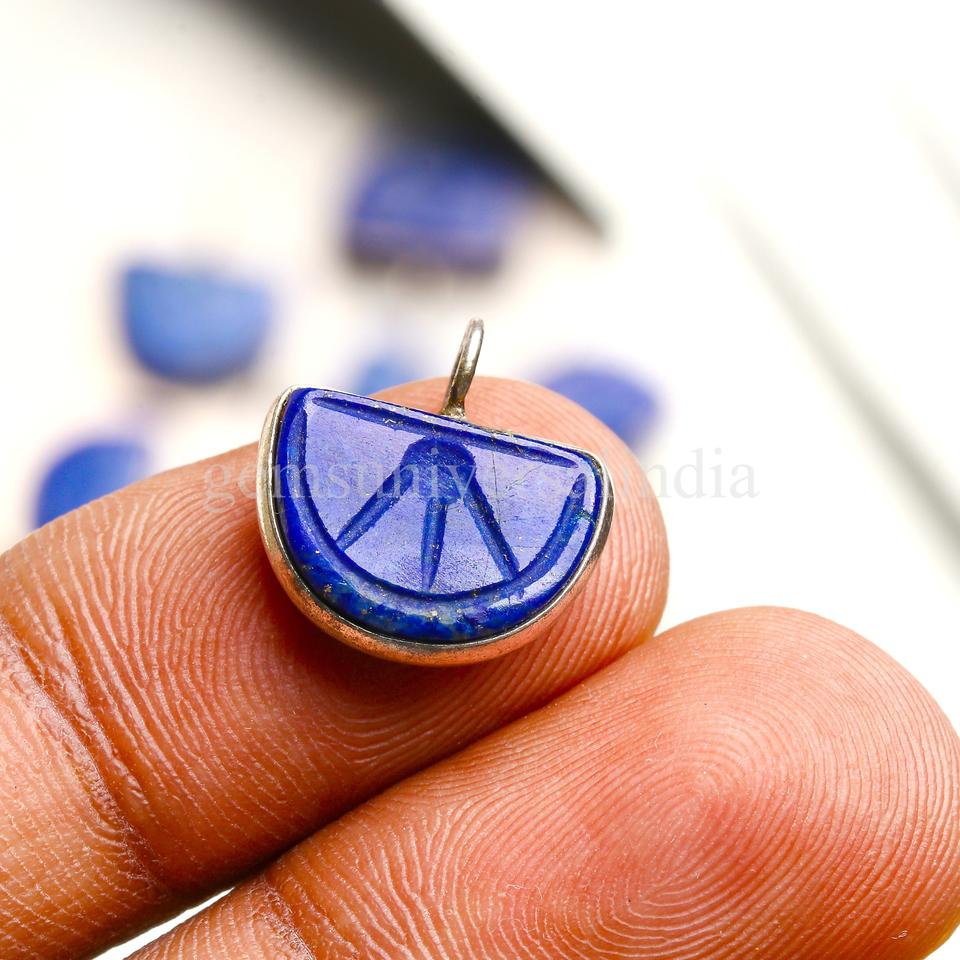 Lapis Lazuli Carved Orange Fruit Pendant Gold Vermeil Lapis Gemstone Pendant Charms Sterling Silver Healing Crystal Jewelry 14mm