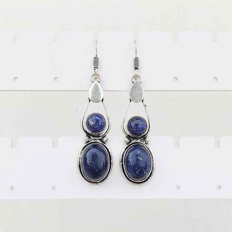 Boucles d'oreilles en lapis-lazuli multi-pierres, plaquées argent 925, faites à la main, bijoux bohèmes, boucles d'oreilles pendantes en pierres précieuses, cadeau pour elle, soldes de Noël