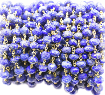 Chaîne en fil de rosary plaqué or 18 carats sur base en argent sterling 925, forme rondelle Lapis Lazuli, pour la fabrication de bijoux