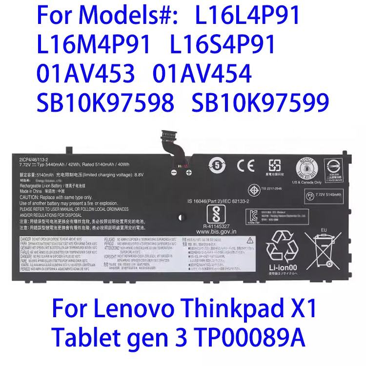Numéro de Type:L16L4P91 L16M4P91 battery For Thinkpad X1 Tablet