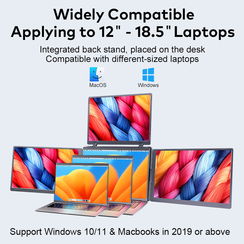 Extenseur d'écran d'ordinateur portable, triple moniteur 16 pouces, moniteur portable FHD IPS, 1 câble pour 3 écrans via USB C pour Windows et MacOS