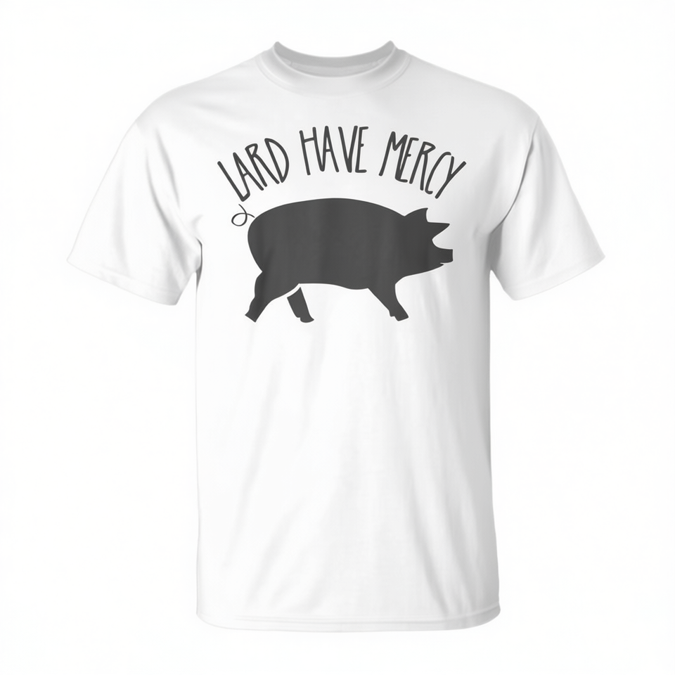 Lard Have Mercy Pig T-Shirt White Unisex Adult Medium Crew Neck Short Sleeve Silk Screen Printed