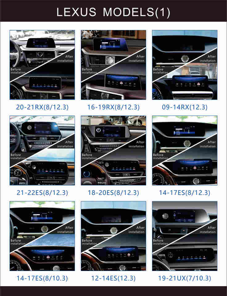 | Lexus | NX200t, NX300, NX300h, (AWD, FSport) | 2015-2018 |