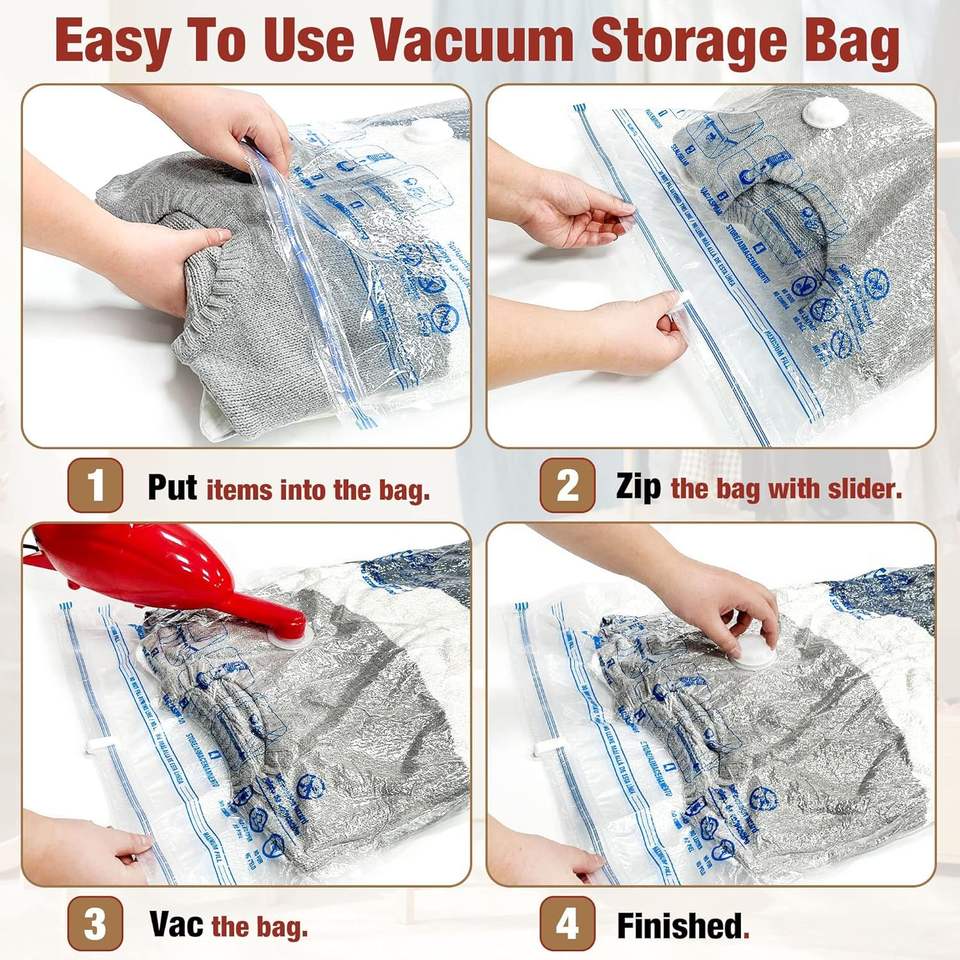 Grands sacs de rangement sous vide de 10 L pour vêtements, couvertures, literie - pour gagner de la place !