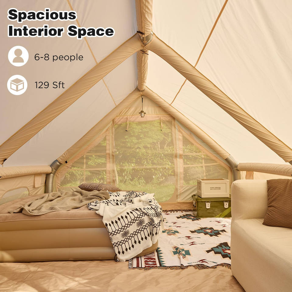 Grande tente de camping gonflable de 129 pieds carrés, tissu Oxford en PVC de luxe, portable et imperméable pour 8 à 10 personnes