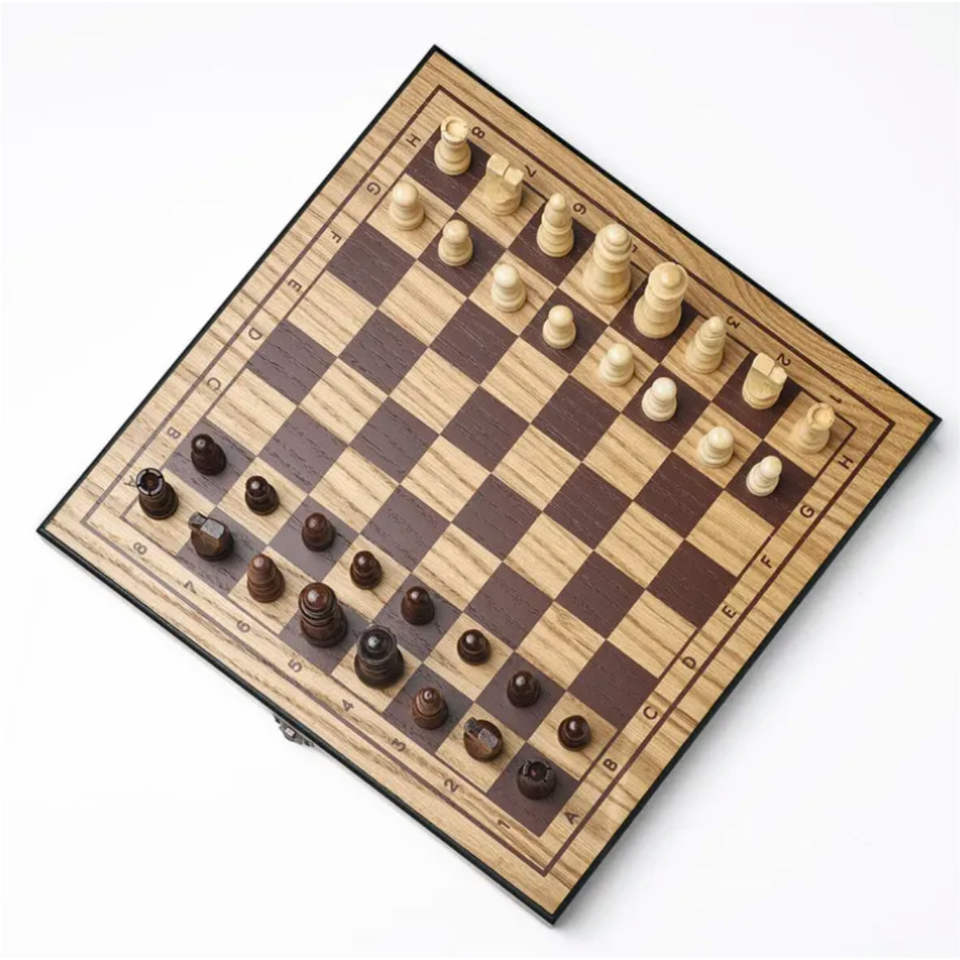 Grand jeu d'échecs artisanal en bois massif de 15 pouces - Élégant plateau pliable finition noyer avec rangement intégré 2-en-1