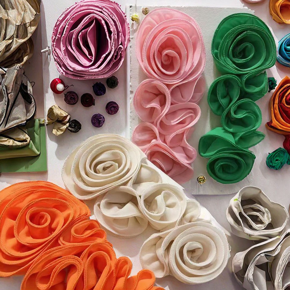Grand patch de col de fleur de rose 3D en toile appliquée pour décoration de costume de chemisier de robe de bricolage-Style à coudre