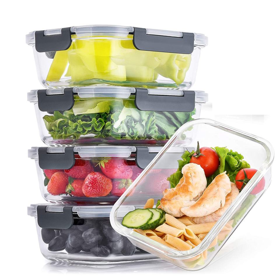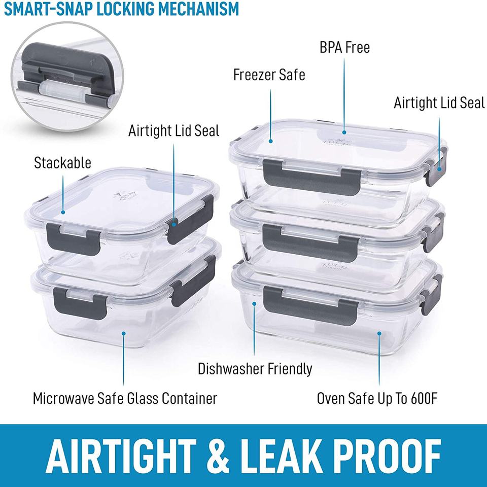 Récipients de stockage en verre, lot de 5 ombrés avec couvercles, 36 oz, pour aliments, avec verrouillage à pression hermétique
