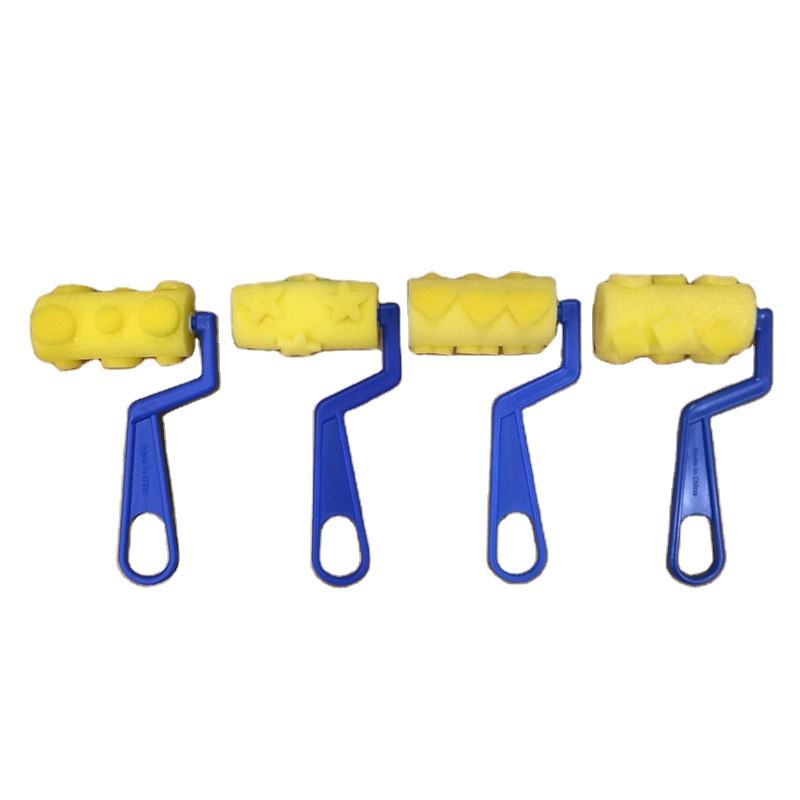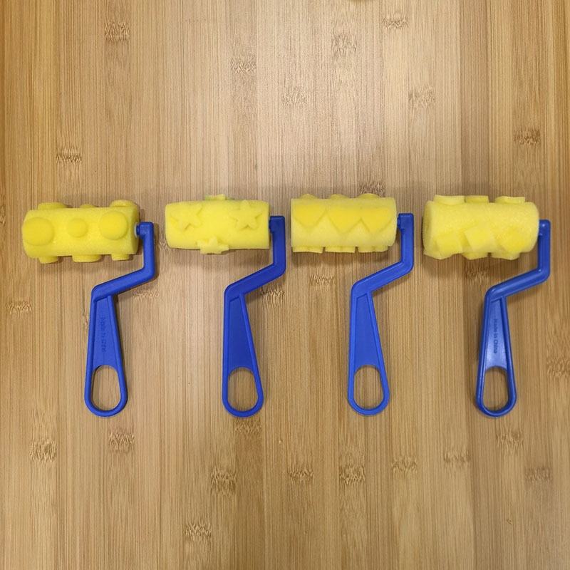 Grand pochoir jaune en forme de 7 tampons à rouleau éponge pinceau à peinture manche en plastique fournitures d'art