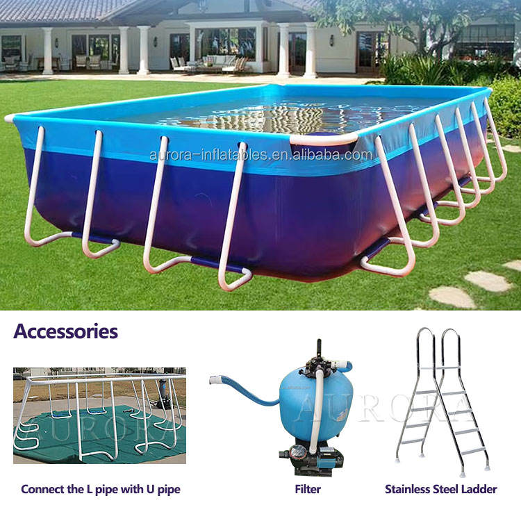 Grande Piscine Hors Sol en Acier Rectangulaire, Grande Piscine Hors Sol en PVC avec Cadre Métallique