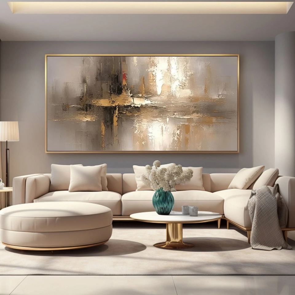 Grande Peinture Murale Abstraite Silencieuse de l'Aube en Plâtre, Art Contemporain sur Toile, Nature Morte et Paysage pour la Maison et la Galerie