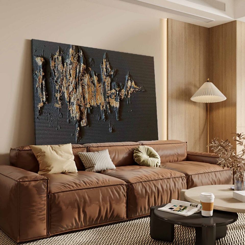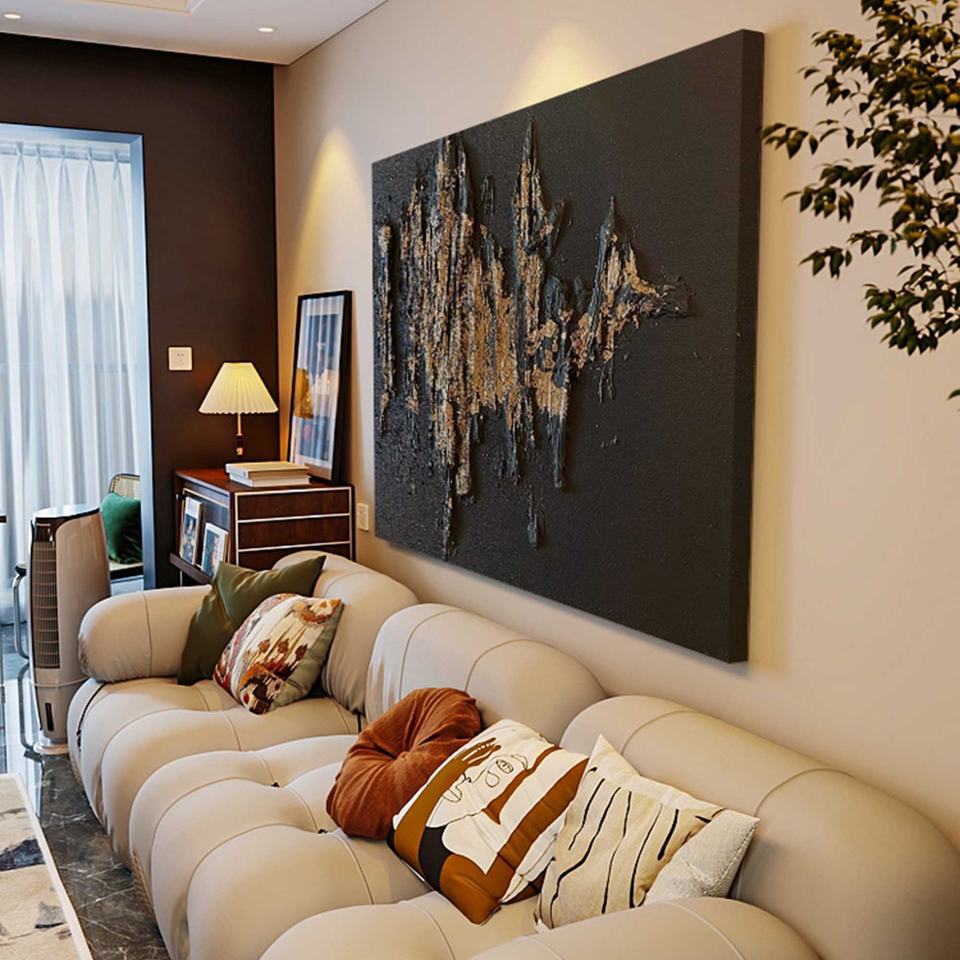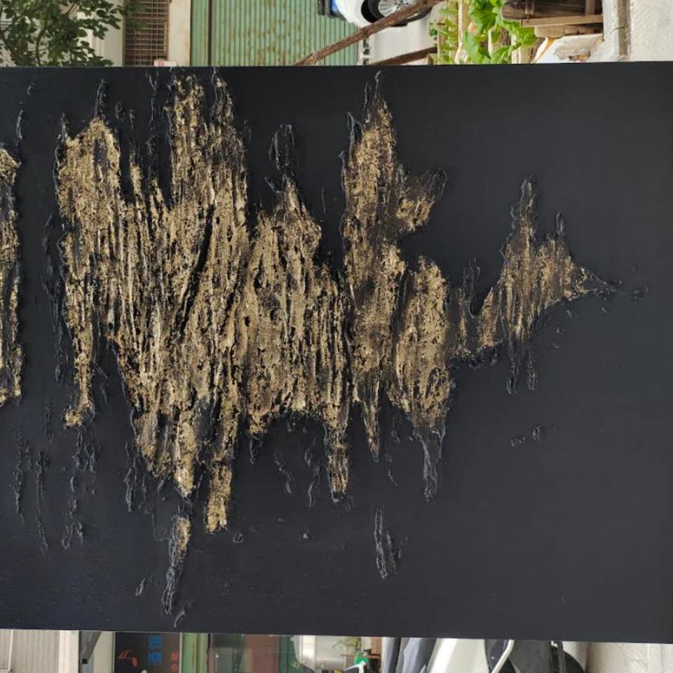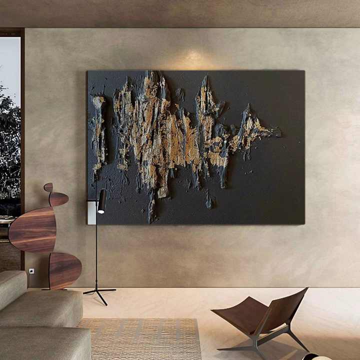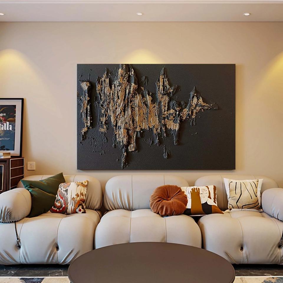 Grande toile d'art abstraite, art mural, peinture acrylique faite à la main avec des couleurs noires et dorées, décoration de maison de luxe, original