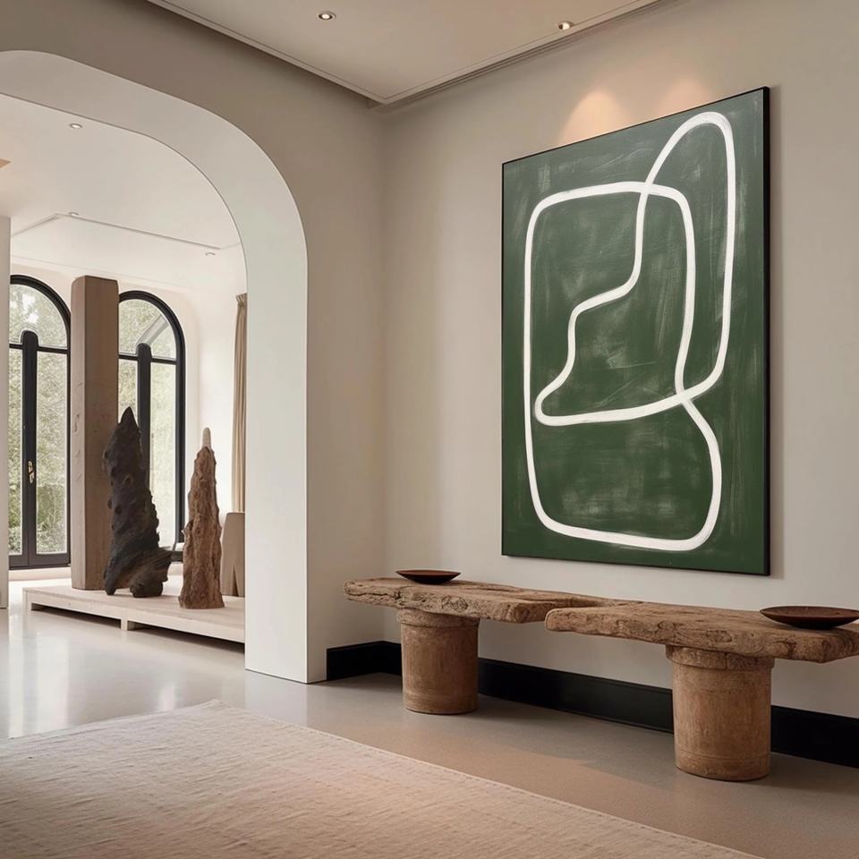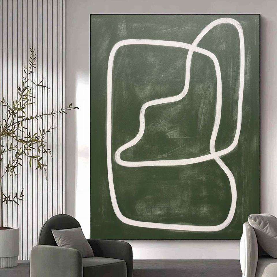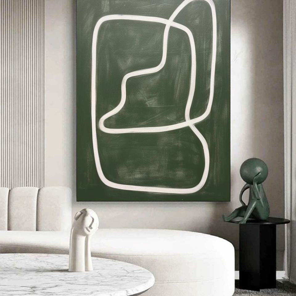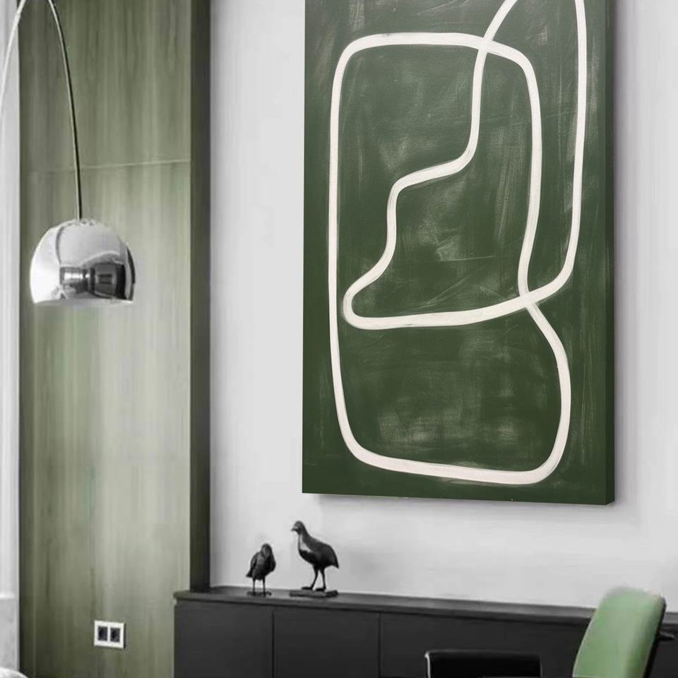 Grande peinture abstraite de nature morte verte sur toile, art mural fait main en acrylique, décoration d'intérieur de luxe