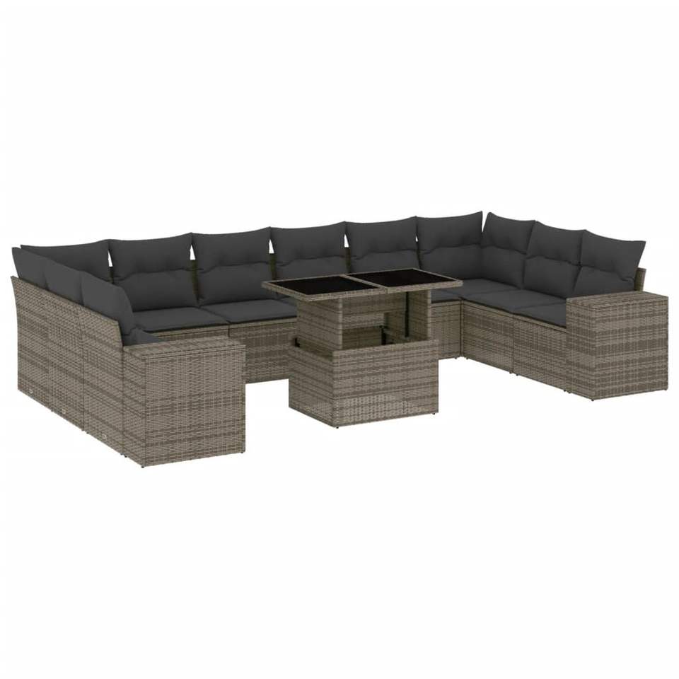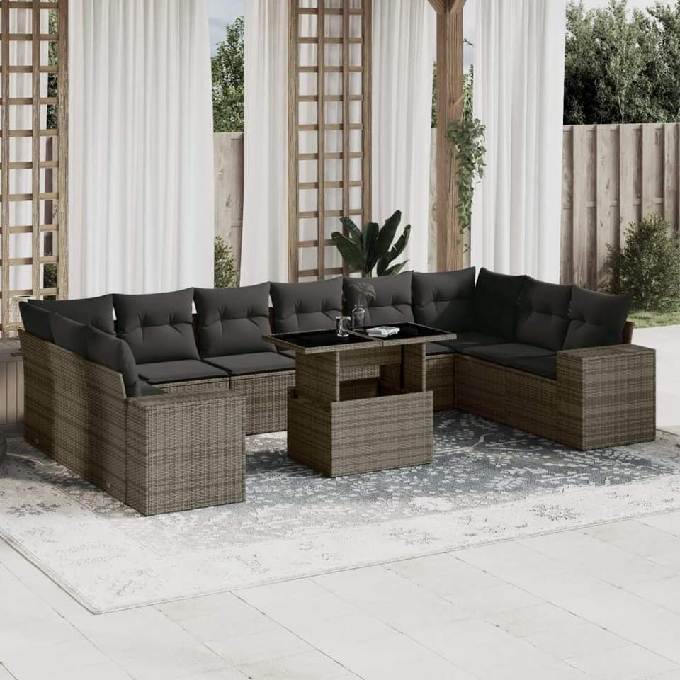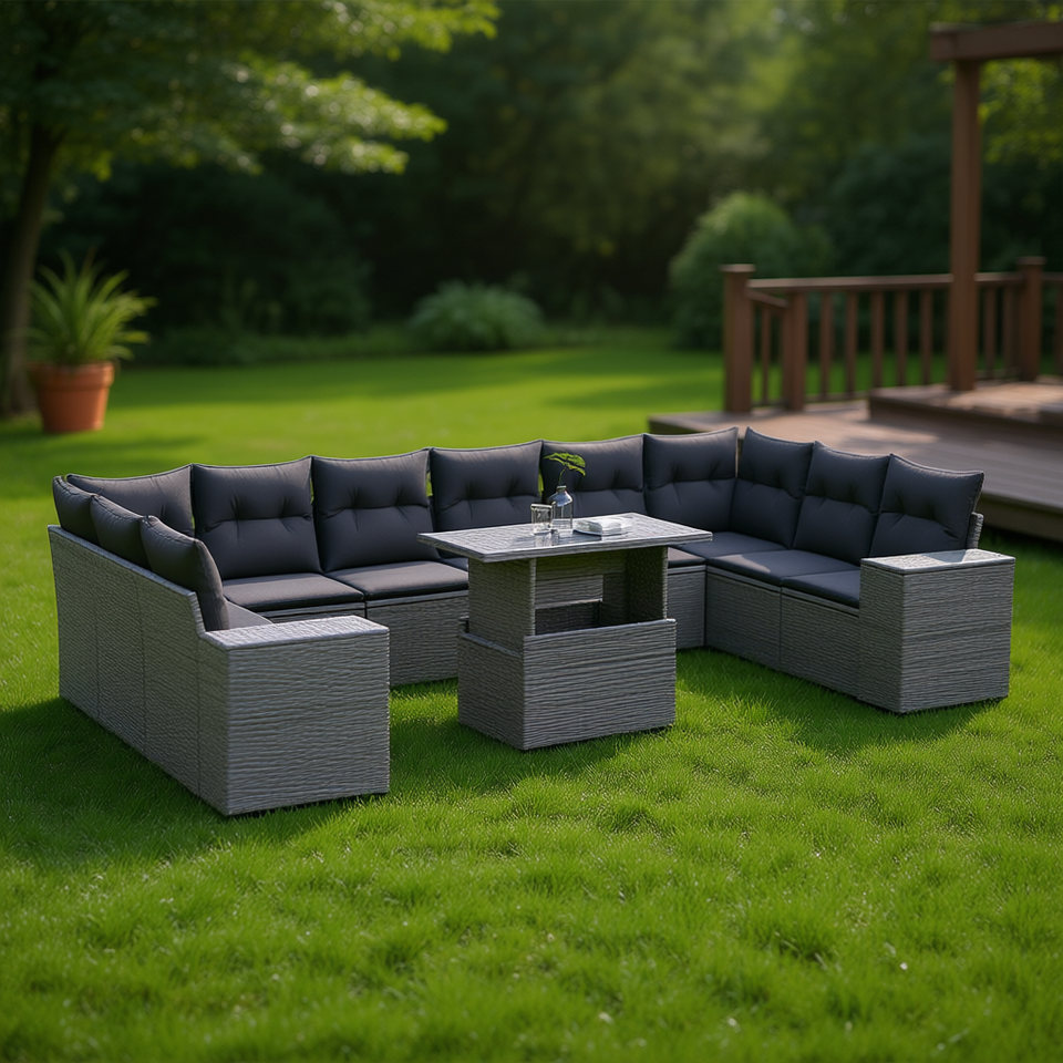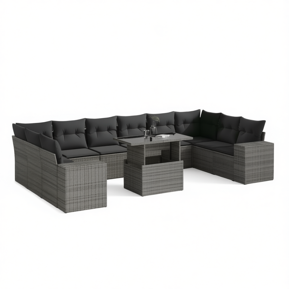 Ensemble de canapés de jardin en rotin gris, 10 places, mobilier d'extérieur, design contemporain, accoudoirs réglables