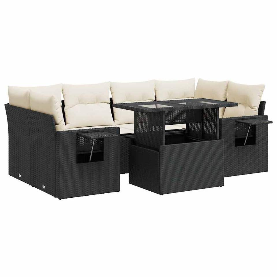 Ensemble de canapés de jardin en rotin PE noir avec pieds réglables, confortable et élégant, mobilier d'extérieur
