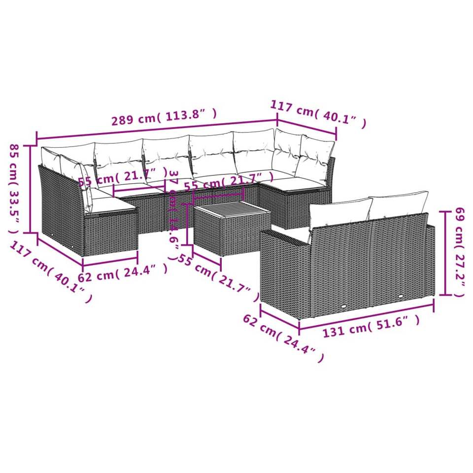 Grand ensemble de canapés de jardin en rotin PE noir avec pieds réglables, canapés de jardin réglables