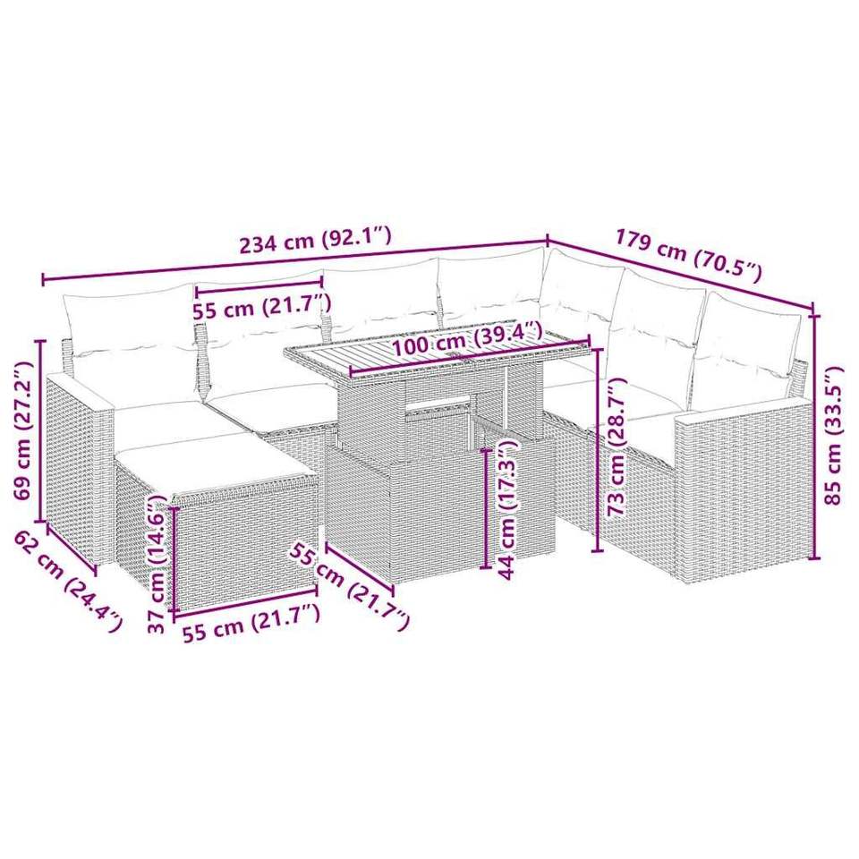 Grand ensemble de canapés de jardin réglables en rotin PE beige, mobilier de jardin ajustable