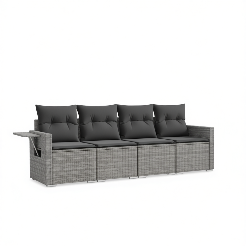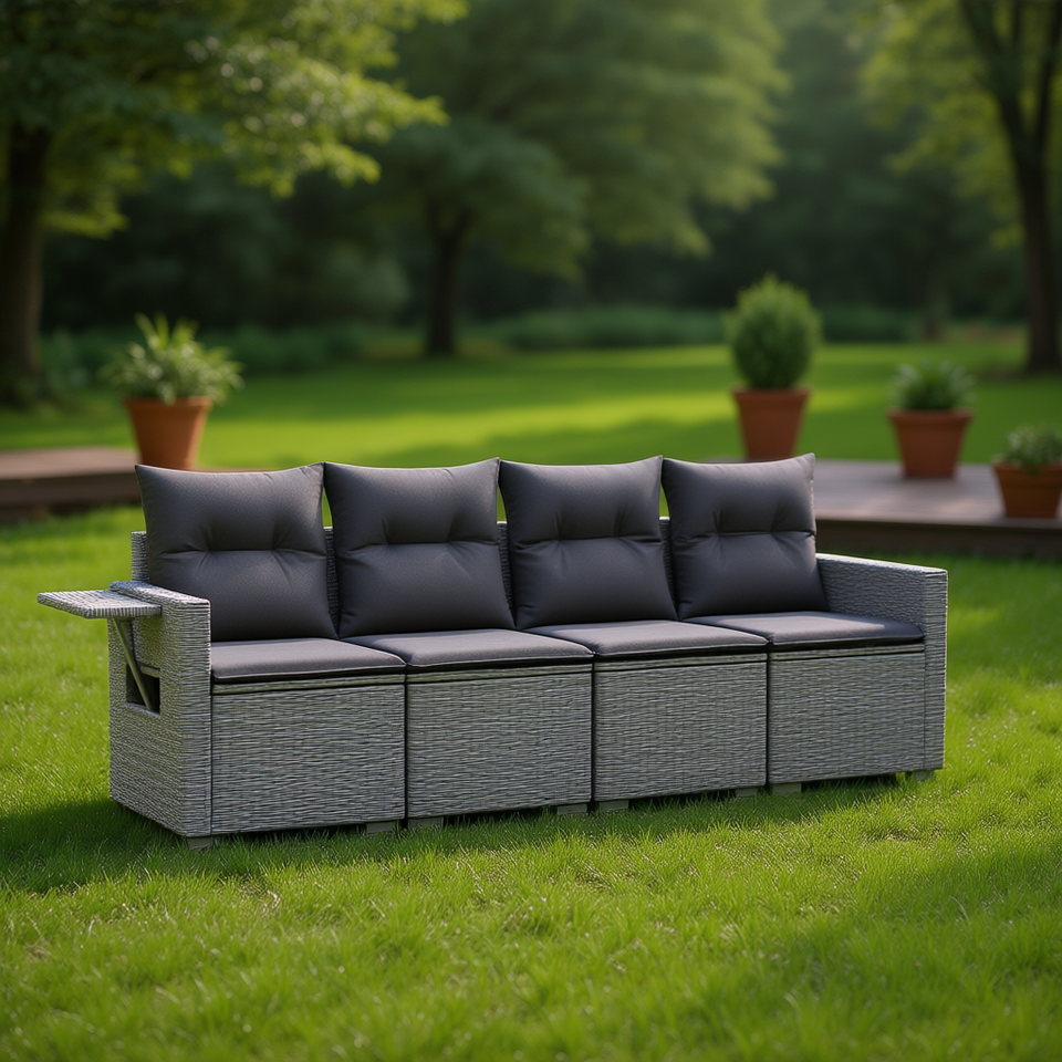 Ensemble de canapés de jardin en rotin gris 4 places avec pieds réglables, mobilier d'extérieur au design contemporain