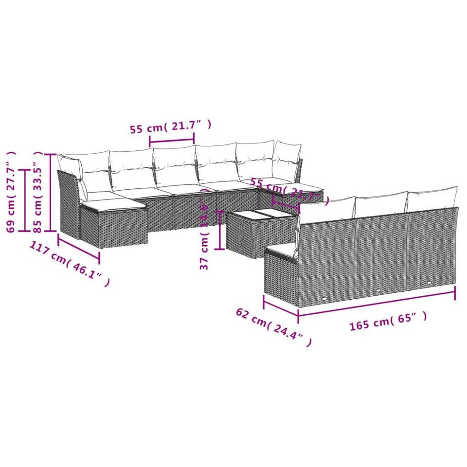 Grand ensemble de canapés de jardin en rotin PE gris avec pieds réglables, confortable et élégant, mobilier d'extérieur