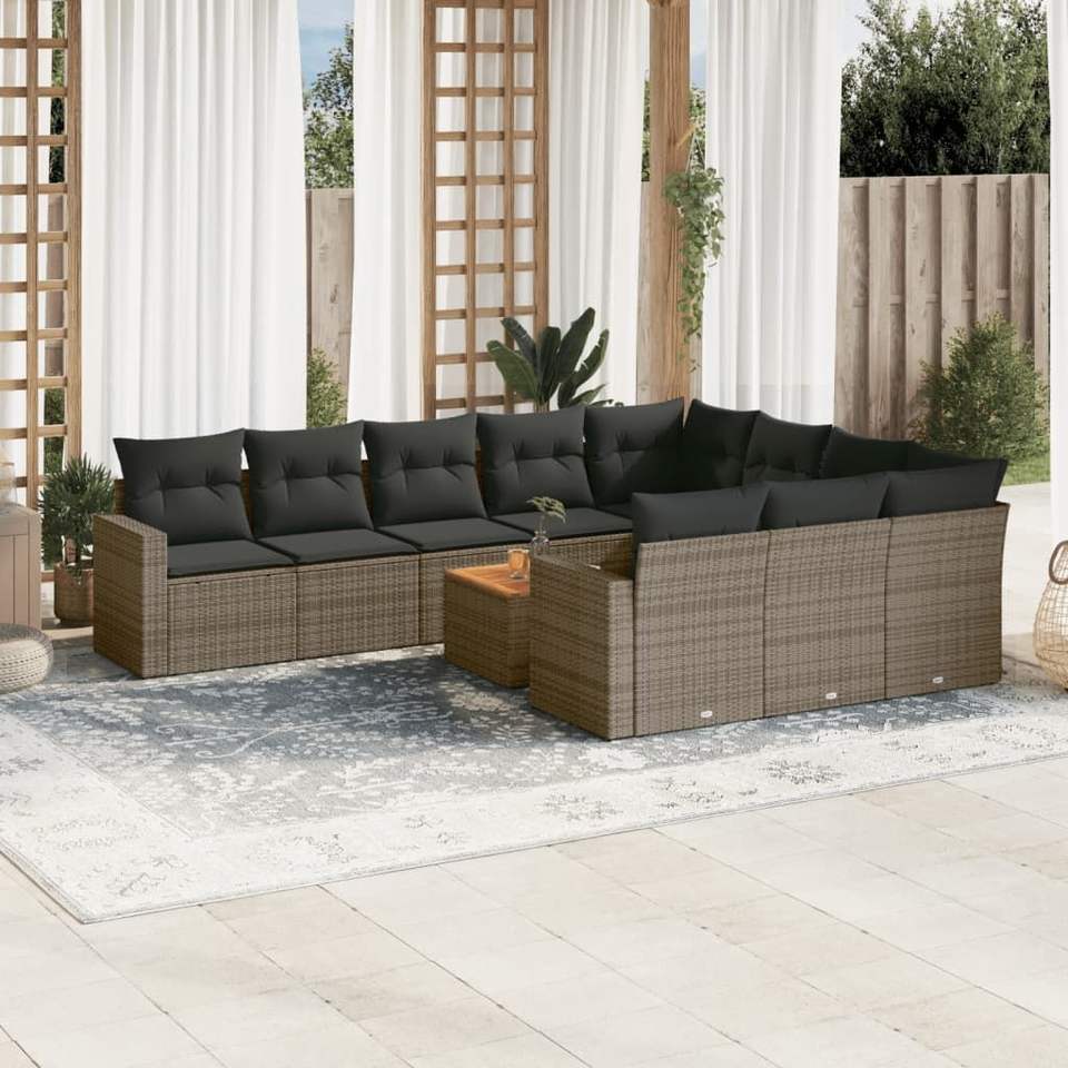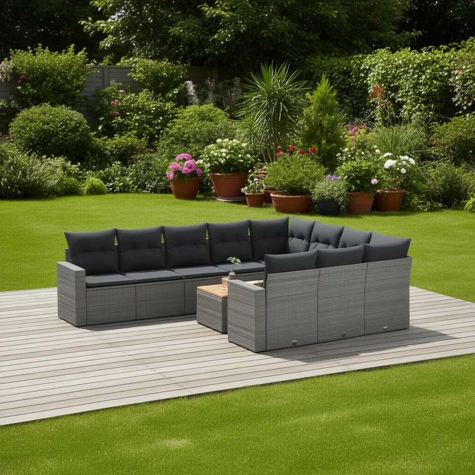 Ensemble de canapés de jardin en rotin gris D0100X38MBX avec pieds réglables, mobilier d'extérieur contemporain, capacité de 10+ places