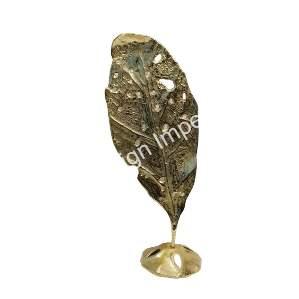 Grande sculpture de feuille en aluminium Objet décoratif Figurine de feuille faite à la main dorée Accessoires de décoration pour la maison