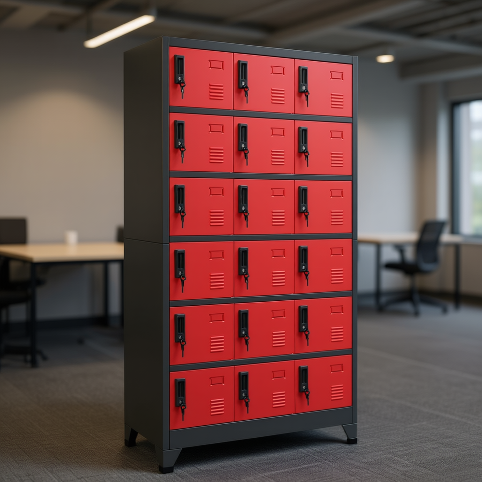 Grand casier en acier anthracite et rouge pour le rangement, modèle D0100HXNUSX