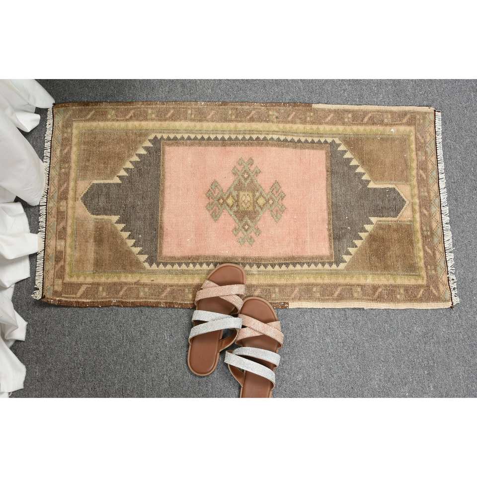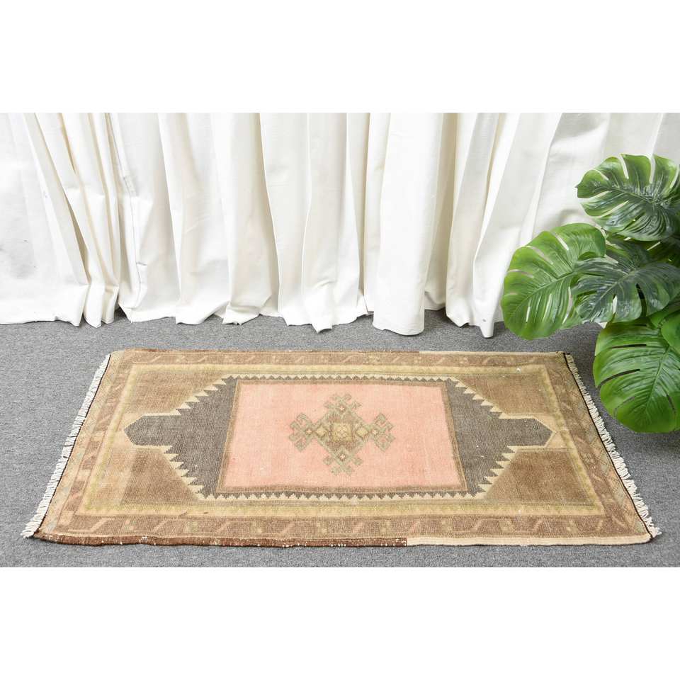 Tapis turc de grande surface classique rose marron 1.5x2.9ft laine à motif abstrait avec support en latex pour salon adolescent