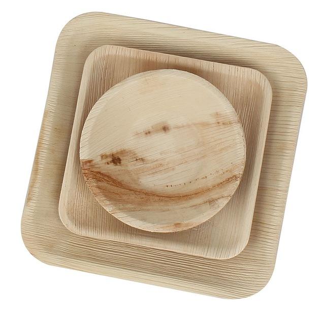 Grandes assiettes jetables en feuilles d'arec, texture bois naturel, vaisselle biodégradable pour l'exportation mondiale, produits éco-responsables