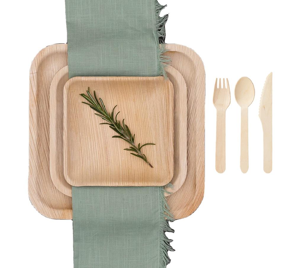 Grandes assiettes jetables en feuilles de palmier Areca, robustes et biodégradables, pour les banquets de mariage et la restauration écologique