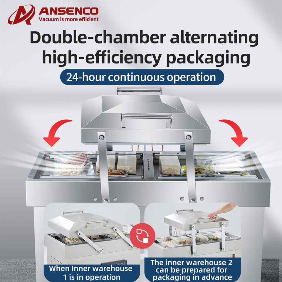 Grande machine de remplissage, d'emballage et de scellage sous vide automatique multifonctionnelle à double chambre pour aliments, film plastique, haute vitesse 15-20