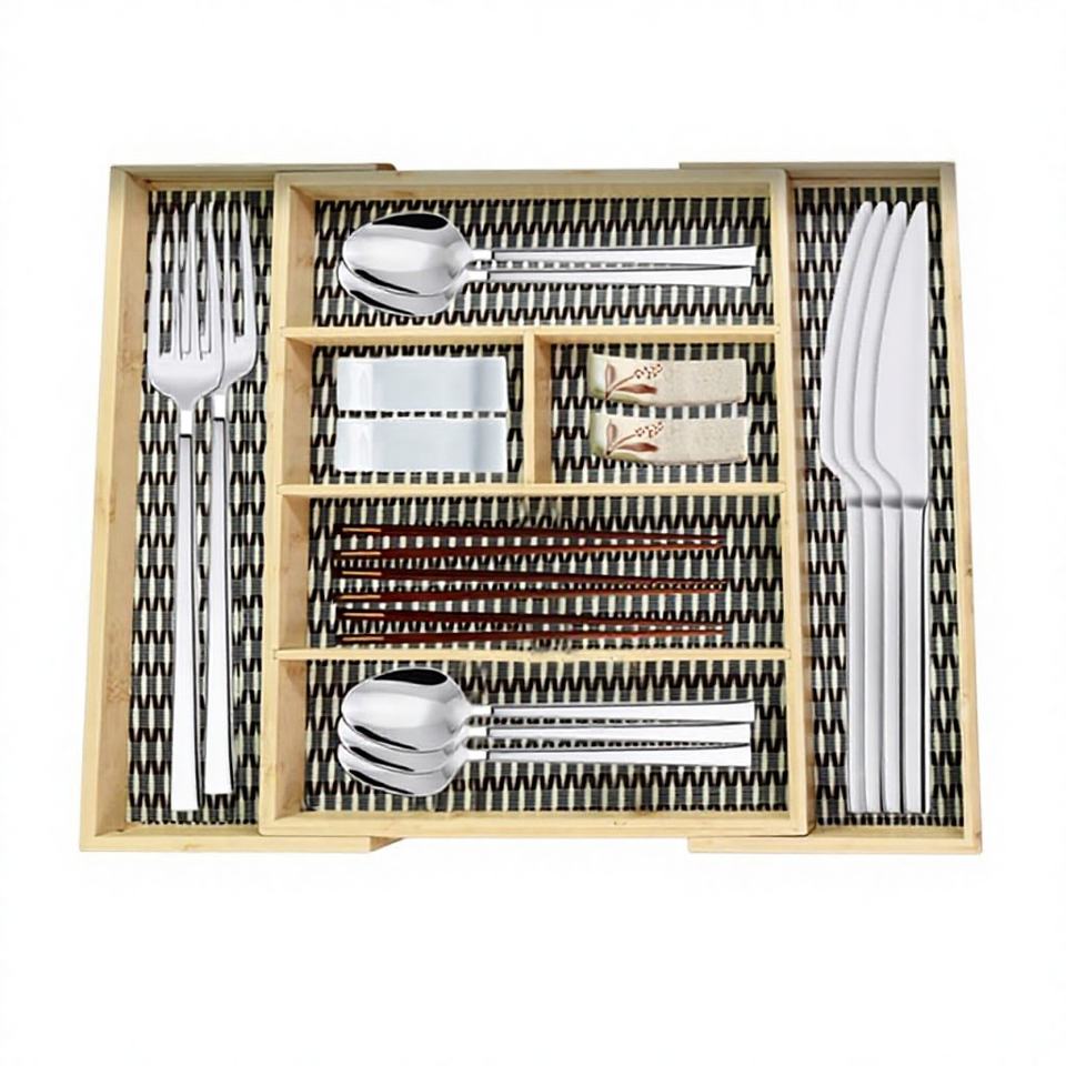 Name:Expandable Bamboo Rattan Utensil Drawer Organizer