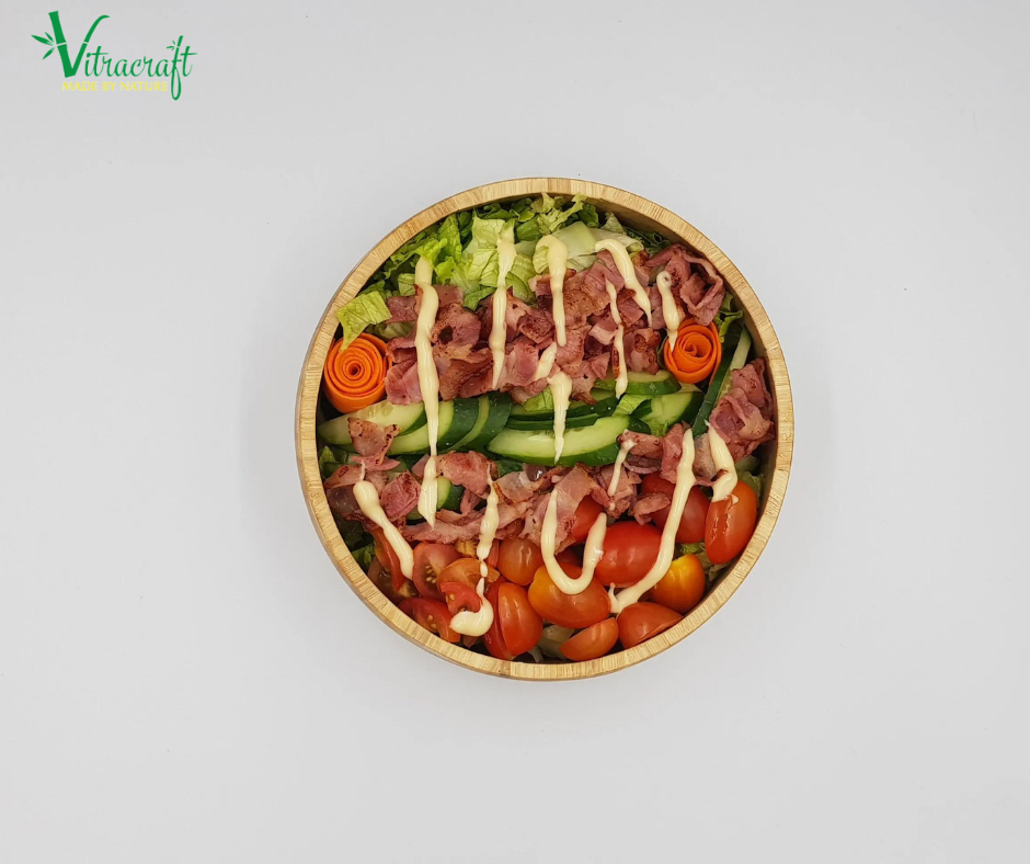 Grand bol à salade en bambou, bol épais en bois naturel massif pour salade ou fruits, fourchette et cuillère de service assorties, cadeau significatif fabriqué à la main, sûr à utiliser