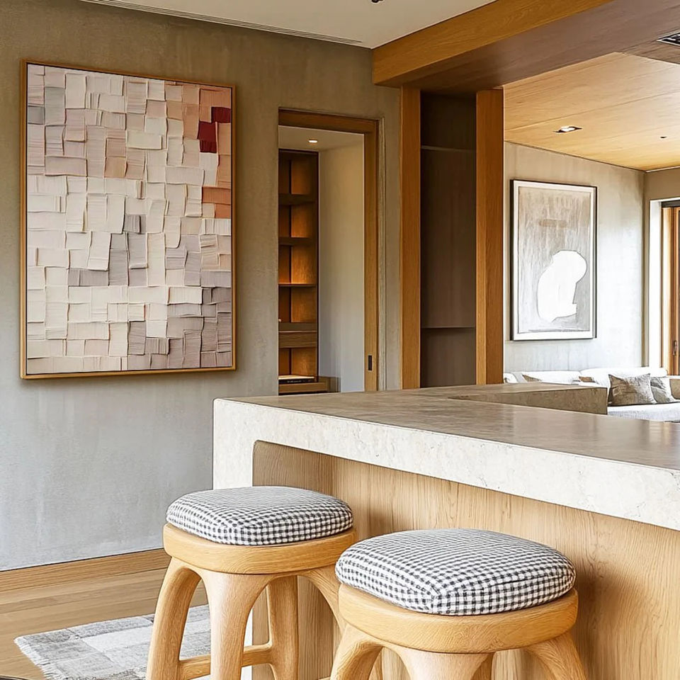 Grande peinture murale abstraite moderne Wabi Sabi verticale beige et marron sur toile pour la maison et la galerie