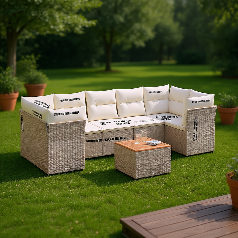 Ensemble de canapés de jardin en rotin beige avec housses amovibles, 6 places, mobilier d'extérieur, design contemporain