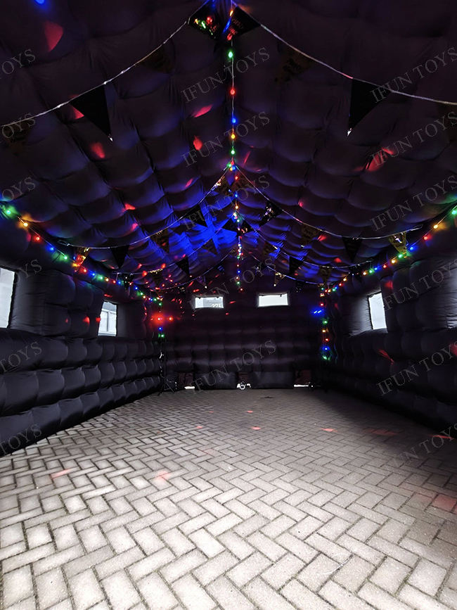 Grande boîte de nuit gonflable noire avec lumière LED Disco pour les événements de tente de fête de club en plein air pour adultes