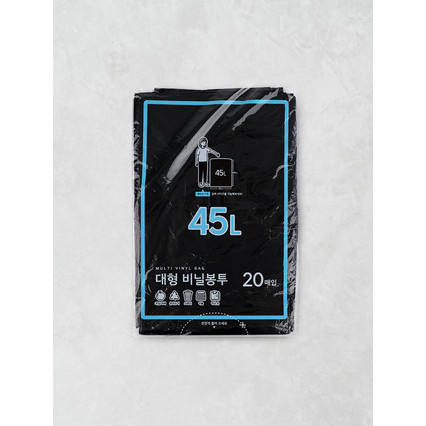 Large Black Plastic Bag for Household Trash 45L Capacity 20 Sheets