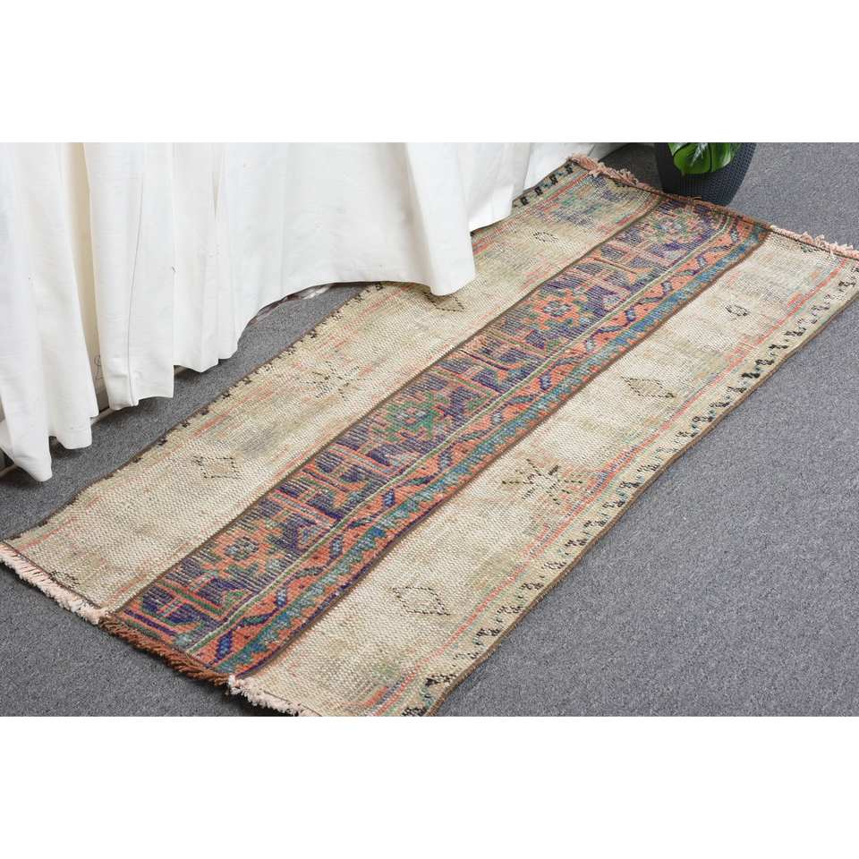 Grand Tapis Bohème Beige 1.9 X 4ft Classique Turc Rectangle Laine Abstrait Patchwork Motif Latex Support pour Tapis de Vie